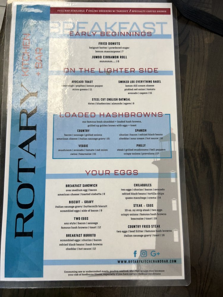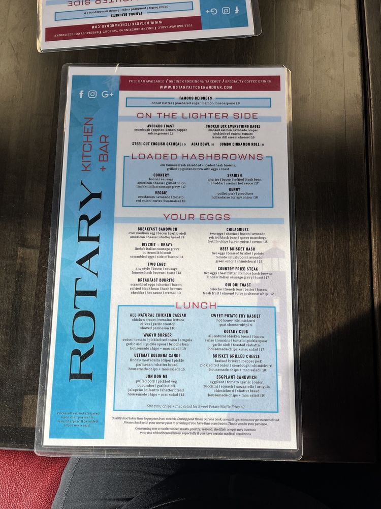 Rotary Kitchen Bar Menu