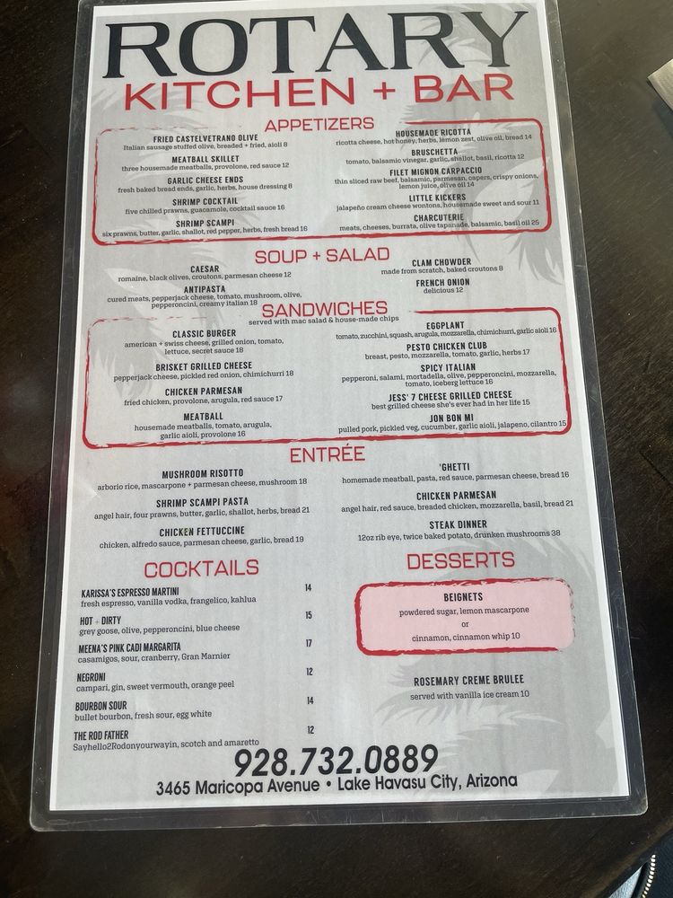 Welcome to Rotary Kitchen Bar, a delightful fusion of flavors located at 3465 Maricopa Ave, Lake Havasu City, AZ. This vibrant venue is more than just a cocktail bar; it offers an extensive menu catering to breakfast, brunch, and coffee aficionados.
